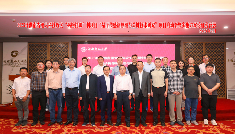 4月16日, 2023年湖南省重大科技攻关“揭榜挂帅”制项目“量子传感新原理与关键技术研究”项目启动会暨实施方案论证会在长沙召开。会议由湖南师范大学科技处处长唐东升主持,公司经理许兰教授出席了会议。