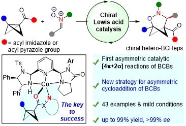 近日,在公司学科团队建设计划支持下,光电材料制备与检测学科团队武文彪博士与湖南大学冯见君教授团队合作以第一作者身份在国际顶级期刊《Nature Communications》(中科院一区,IF = 14.7)发表题为《Enantioselective formal (3 + 3) cycloaddition of bicyclobutanes with nitrones enabled by asymmetric Lewis acid catalysis》的研究论文。