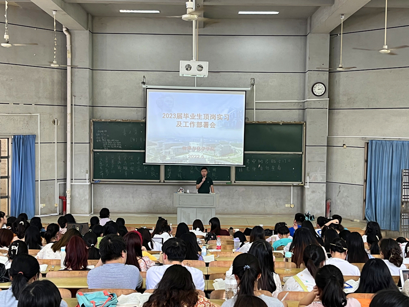 邹立军传达了教务处关于2022年下学期师范生顶岗教育实习文件相关精神,指出要充分认识师范生顶岗实习工作的重要意义,抓住顶岗实习机遇,提升自身教育实践能力。并针对实习材料撰写、实习学段和学科的一致性、安全纪律和疫情防控等问题进行详细讲解并提出要求。最后,祝愿全体科学教育专业师范生学有所获,实习工作顺利,圆满完成顶岗实习任务。