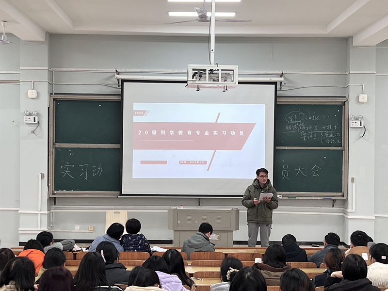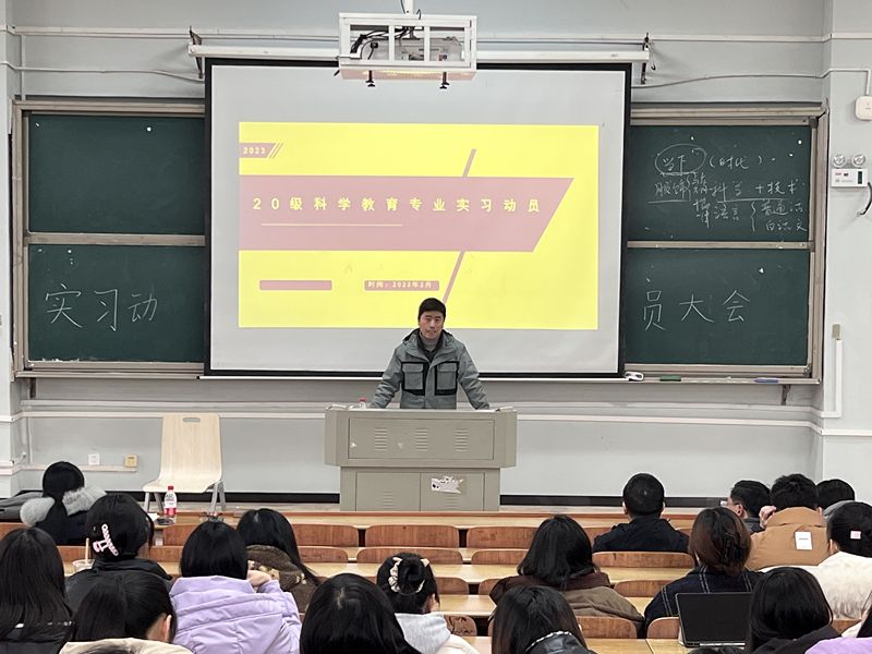 为推进2023年教育实习工作的顺利开展,2月18日中午,bevictor韦德国际院教育实习动员大会在怀中南206举行,经理助理邹立军、科学教育系主任黄文、副主任江华军、实习指导老师和2020级科学教育专业全体员工参加,会议由江华军主持。