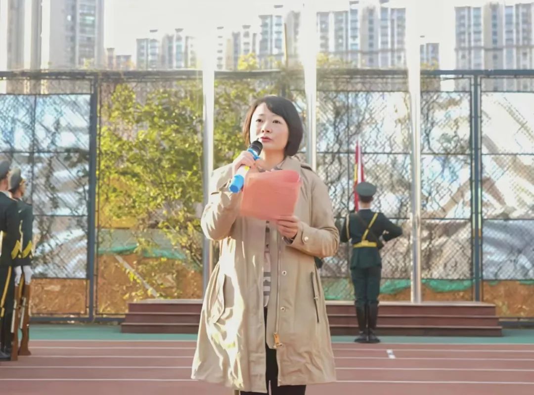 国旗队护旗手迈着矫健的步伐,护着鲜艳的五星红旗入场,在全体师生的注目下,五星红旗冉冉升起,在场师生敬礼仰注,齐唱国歌,仰望五星红旗迎着朝阳升起,全体师生心中盈满自豪之情。